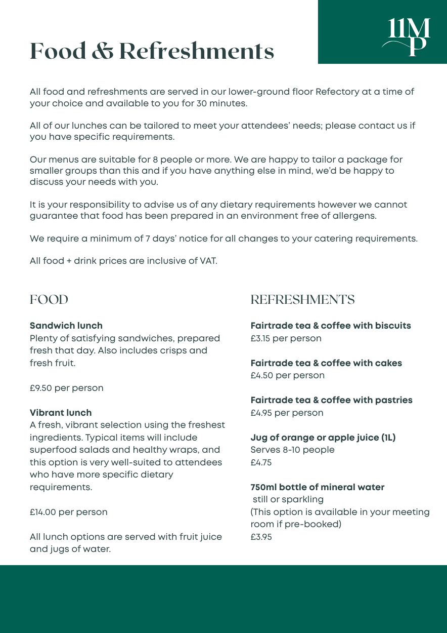 Menus at Mandeville Place